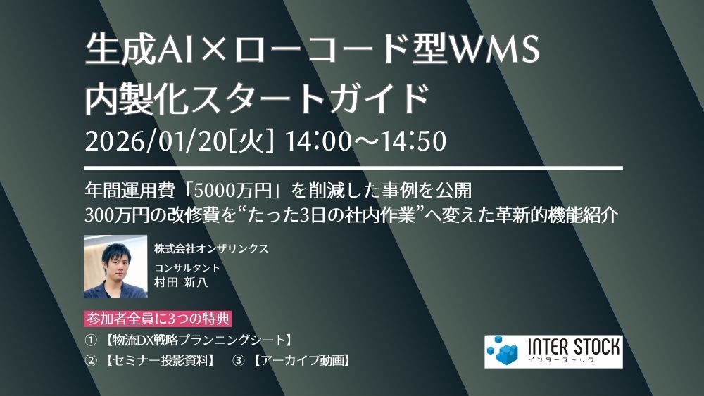WMS導入から3年、5年──。当初の業務フローのまま、市場の変化に取り残されていませんか?多くの企業が、年間数百万円の保守費用を払い続けながら、改善が進まない「導入後の落とし穴」に陥っています。問題の本質は、「自分たちでシステムを進化させられない」こと。今、その状況を変える鍵が「生成AI×ローコード」です。現場が自ら改善を実行。完全ソースコード開示で真の内製化を実現します。このセミナーでは、レガシーシステムから脱却し、「導入後も成長し続けるWMS」を実現する具体的な戦略をお伝えします。保守費用を「守り」から「攻め」に変え、自己進化するシステムへ