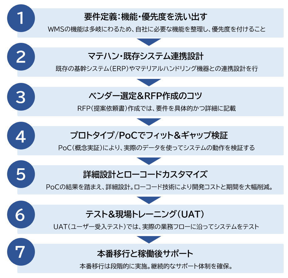 WMS導入の流れ|7STEPで失敗を防ぐ