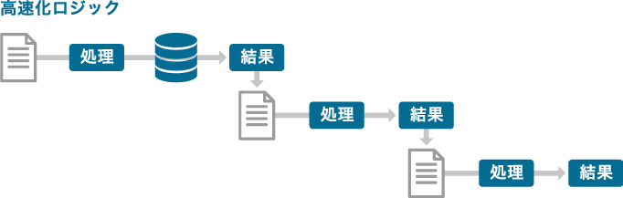 直積構造を利用した並列計算アルゴリズムを利用して1度処理した結果をメモリ上に保持し、ディスクへのアクセスを最小限にすることで、圧倒的な高速処理を実現しました。