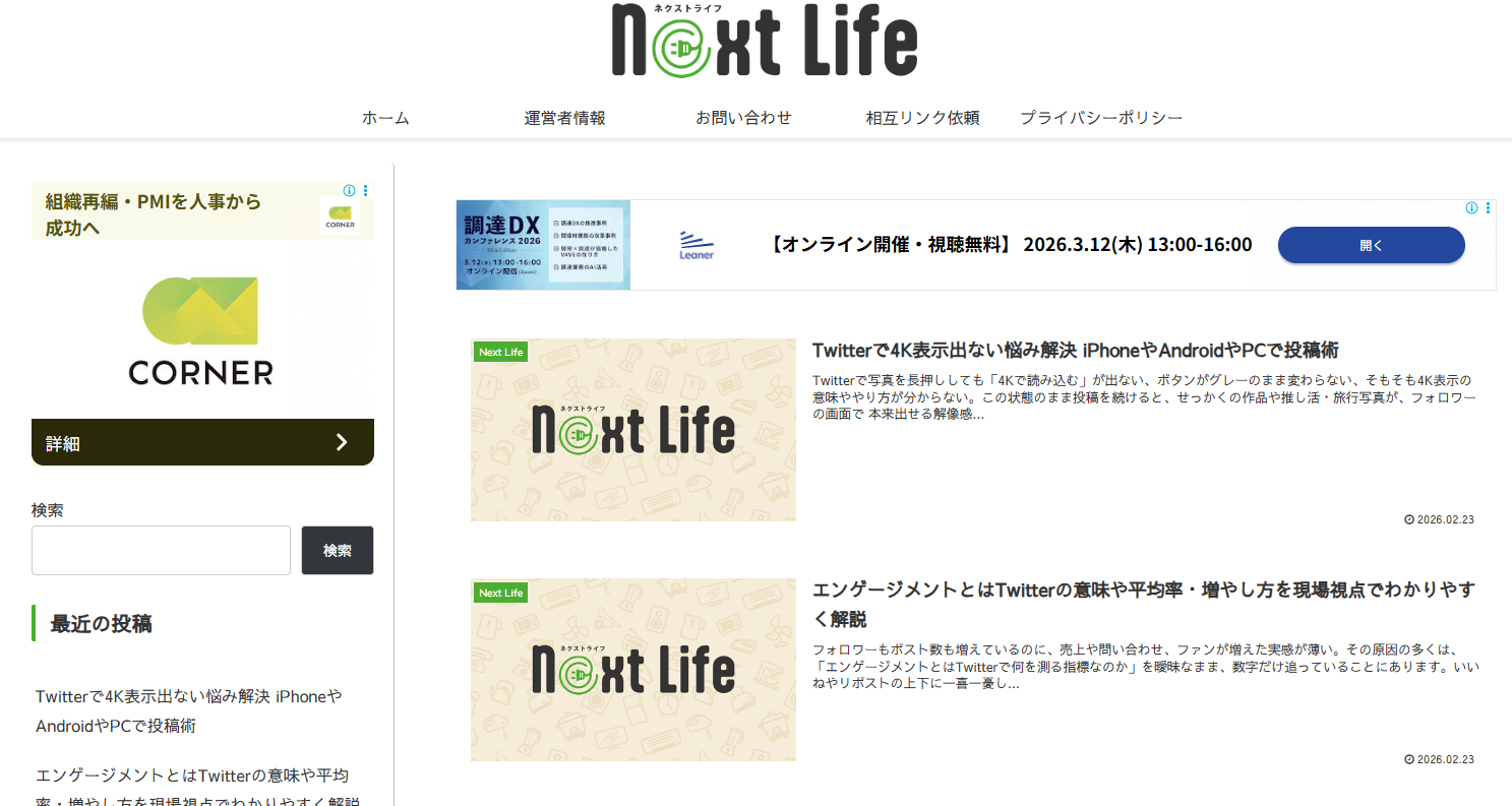 「Next Life」様は近未来の暮らしや次世代の生活スタイルに役立つスマホアプリ・SNS活用や便利なテック情報などをわかりやすく解説するライフスタイルメディアサイトです。