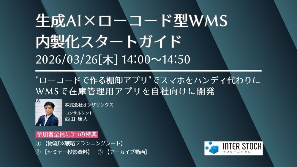 でも、そもそもなぜ棚卸はこんなに大変なのでしょうか。「人が集まらない」「時間がかかる」「差異が減らない」。原因は、日々の在庫誤差の蓄積にあります。本セミナーでは、ローコード対応型WMSインターストックを活用し、スマホ用棚卸アプリをその場で作成する実践デモをお見せします。さらに、紙・Excel依存からの脱却、倉庫を止めない循環棚卸、差異が溜まらない日常運用など、棚卸を根本から楽にする方法も解説します。